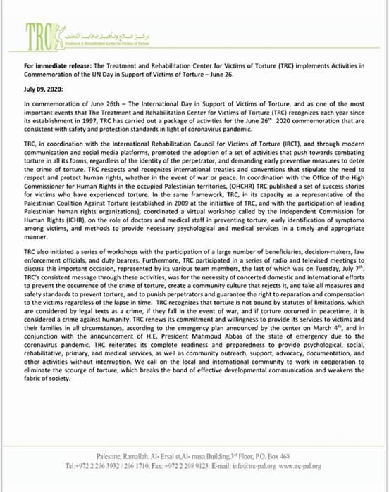 • ارقام الطوارئ التي اعتمدها طاقم مركز علاج وتأهيل ضحايا التعذيب .