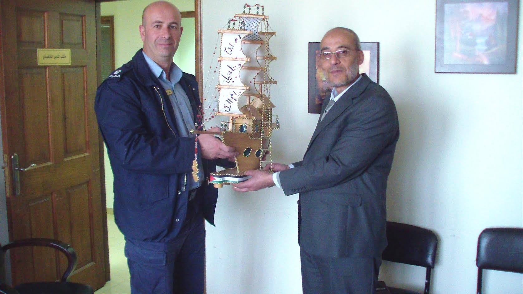 #خلال زيارة مدير مركز اصلاح وتاهيل رام الله الرائد نائل جمعة الى مركز علاج وتاهيل ضحايا التعذيب وعقد لقاء مع مدير المركز الاستاذ خضر رصرص، حيث قدم الرائد جمعة هدية للمركز تقديرا للجهود التي يبذلها في عمله في مركز اصلاح وتاهيل رام الله.
